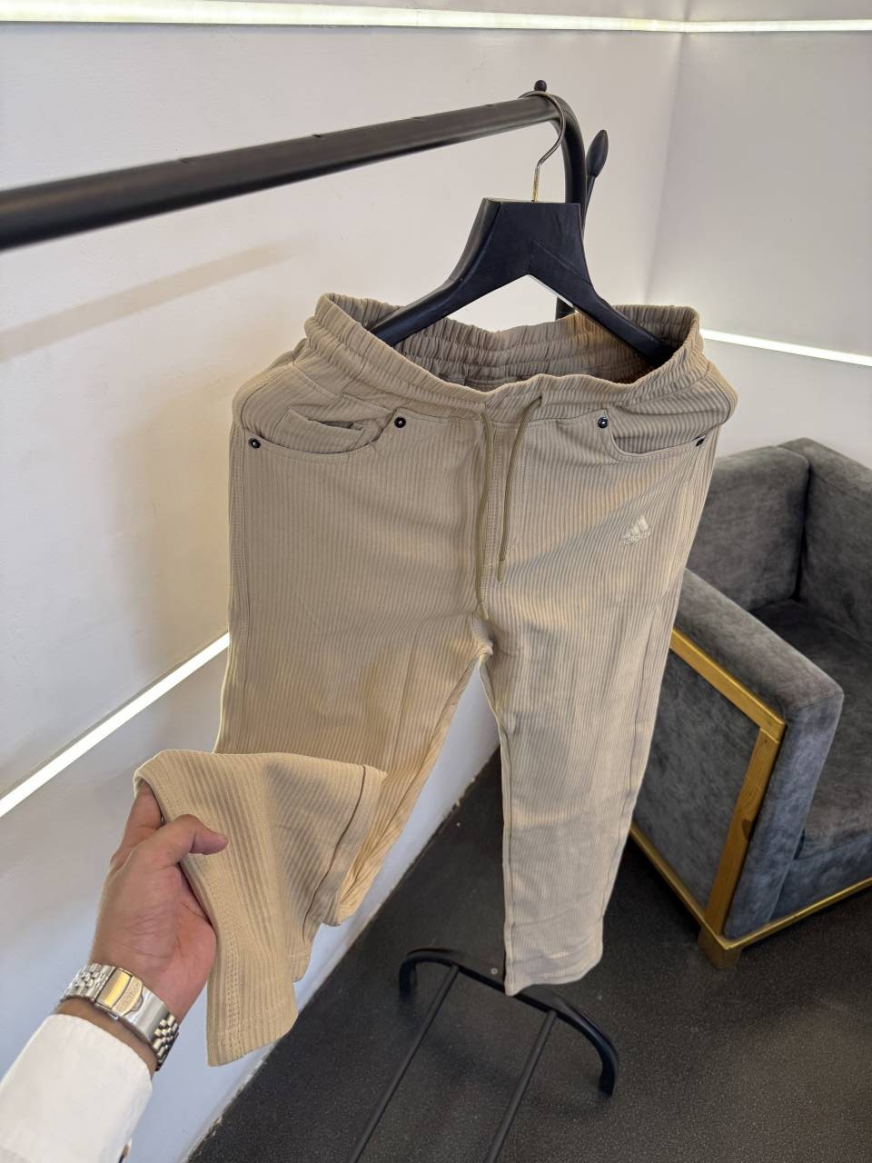 ? *Adidas imported courduroy fabric straight fit track pant with embroidery logo front two pocket and one back pocket now in stock*?