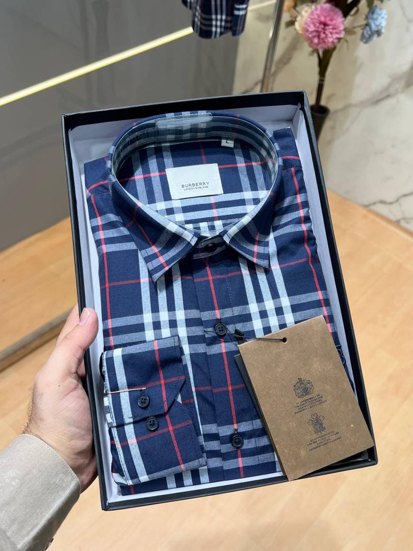 Burberr y Premium Checks Shirt With custom Branded Button Tagging And Brand Packing 3799