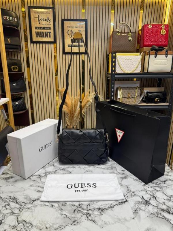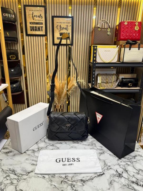 Guess Quilted Crossbody Bag With Box And Dust Bag Including (Black)