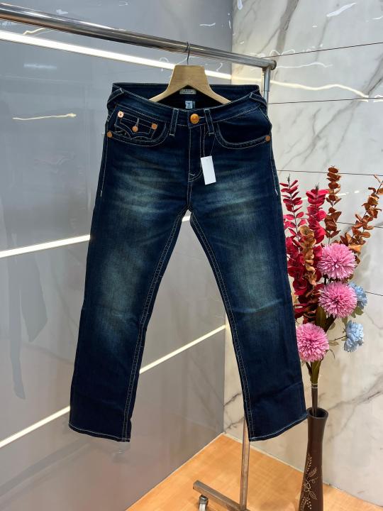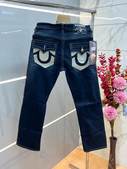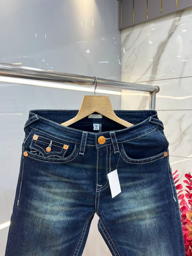 True Religio n Blue Shade Boot cut Premium Imported Stretchable lycra fabric Denim with back flap pocket Design 3843